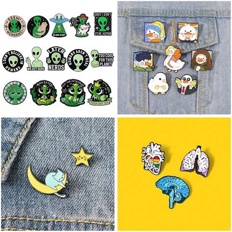 UFO Alien Cats Enamel Lapel Pin Cartoon ET Brooches Cartoon Jewelry For Clothes Bag Hat Custom Funny