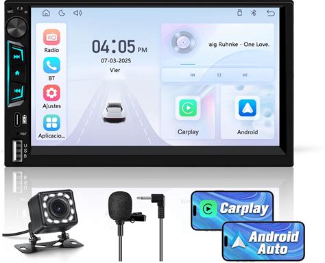Pyniro Universal Double Din Car Stereo With Wireless Carplay & Android Auto, 7" HD Touch Screen Head Unit With Backup Camera/External Microphone, Car