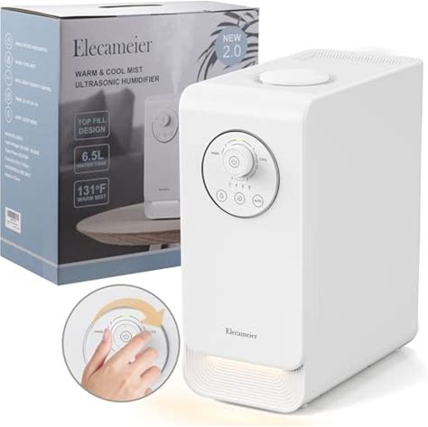 Warm And Cool Mist Humidifier New 2.0 Elecameier 6.5L Top Fill Humidifier For Bedroom Large Room With LED Light And Remove Control, Smart Humidifier For Plant With Humidity Control And Easy To Clean - Smart Home Appliances(White)