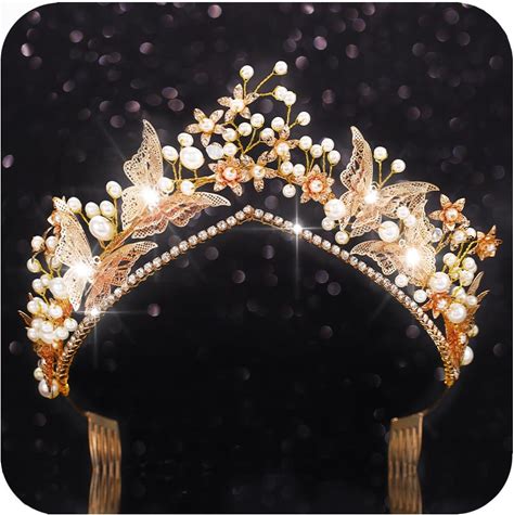 CLOACE Butterfly Crowns For Women Gold Rhinestone Fairy Tiaras Bridal Wedding Headpiece For Bride