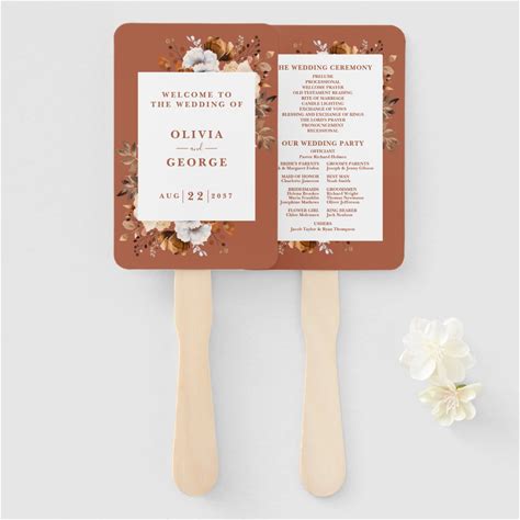 Terracotta Fall Rustic Floral Wedding Program Hand Fan