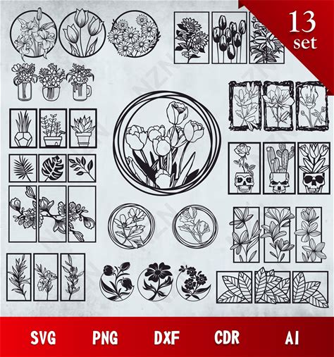 Flower SVG Bundle, Vector Files, .Png, .Svg, .Dxf, .Cdr, .Ai, Ready To Print, Cactus, Flowers Silhouette, INSTANT DOWNLOAD, Cut File