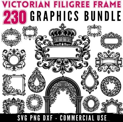 Victorian Filigree Frame SVG Bundle, Ornate Frame Cut Files, Vintage Border Clipart, Cricut Svg, PNG, DXF, Commercial Use, Laser Cut Files