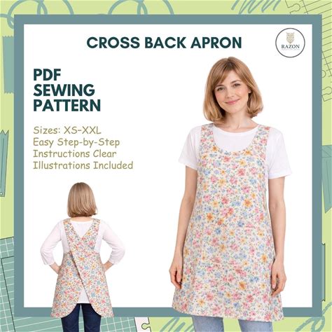 Cross Back Apron Sewing Pattern PDF | Beginner-Friendly, Sizes XS-XL