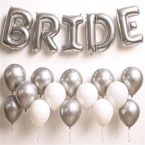 Katchon, 27Pcs Silver Bride Balloons Set - 16 Inch | Silver & White, For Bachelorette Party Decorations | Bridle Shower | Bride And Latex Balloons |