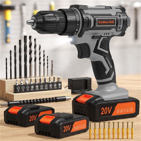 Cordless Drill, 20V Power Drill, Double 2000Mah Power Pack Electric Drills, Cordless Drills With Power Pack And Charger, 3/8" Keyless Chuck