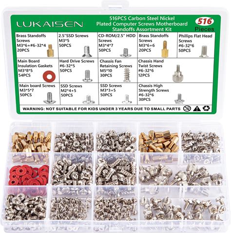 Lukaisen 516PCS Computer Screw Kit, M.2 Nvme SSD Mounting Screws & Standoffs Assortment, PC Case Fan HDD Motherboard Screws With 12 Thumb Screws & 54
