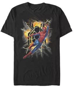 Marvel Spider Man Far From Home Exploding Logo Action Pose Short Sleeve Graphic T-Shirt, Black, Small, Cotton
