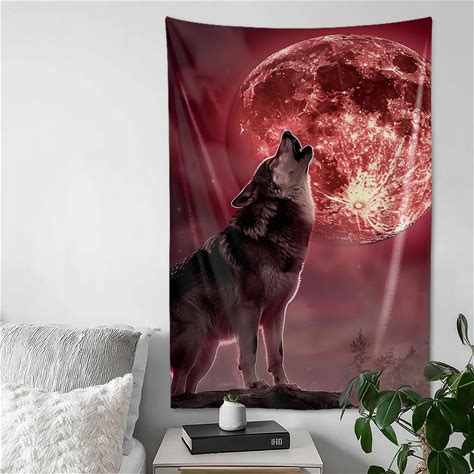 QEOPGNE Wolf Howling Tapestry Wall Hanging Wolves Moon Wall Art Fantasy Wild Animals Backdrop Wolf Wall Decor For Bedroom Living Room Decor For Men