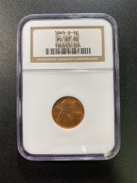 1945 S WHEAT CENT NGC MS-67 RD - UNCIRCULATED - RED - EARLY DATE - SLABBED - 1C