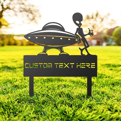 Alien & UFO Spaceship Yard Stake, Custom Metal Alien Garden Yard Art, Outer Space Yard Decor, Funny Alien Yard Stake, Father's Day Gift