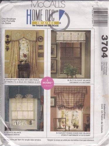 Mccall's 3704 Window Treatments Sewing Patters Free Shipping. Mccall's. Sewing Patterns. 023795370417.