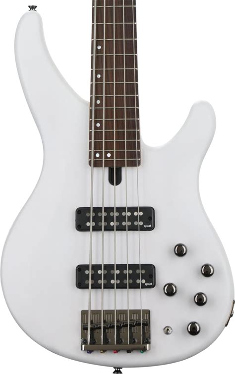 Yamaha TRBX505 5-String Bass Guitar - Translucent White 5-String Electric Bass With Mahogany Body, 5-Pc Maple/Mahogany Neck, Rosewood Fingerboard,