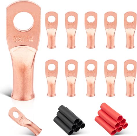 RED WOLF 8 AWG 1/4" Battery Cable Lug 12 PCS W/3:1 Heat Shrink Tubing For Wiring Insulation Black Red 12 PCS For Automotive Electrical 8 Gauge Wire