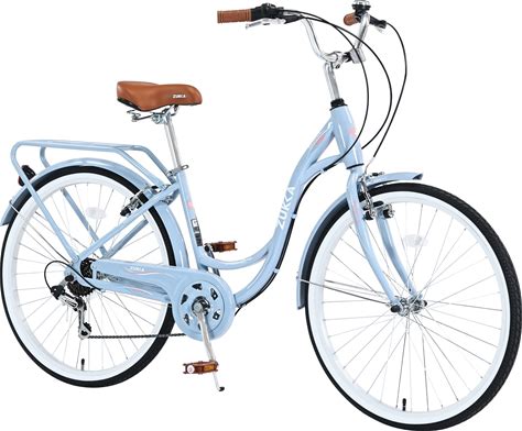 L-TWOO Beach Cruiser Bike 24 Inch/26 Inch Low Step - Through Bike Elegant Ladies Bike 7 Speed V - Brake Cruiser Bike With Rear Rack Bell For Girls