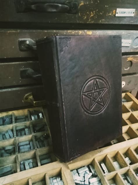 Leather Journal - Engraved With Pentacle And Bookbinding Tools- Book Of Shadows, Italian