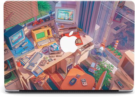 Retro Computer Setup Vintage Gaming Room Nostalgia Art Design Case Anime Top Macbook Air 15 Cases, Macbook Pro M4 2024 2025 Shell Cover