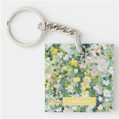 Yellow Green Meadow Flowers Personalized Name Keychain