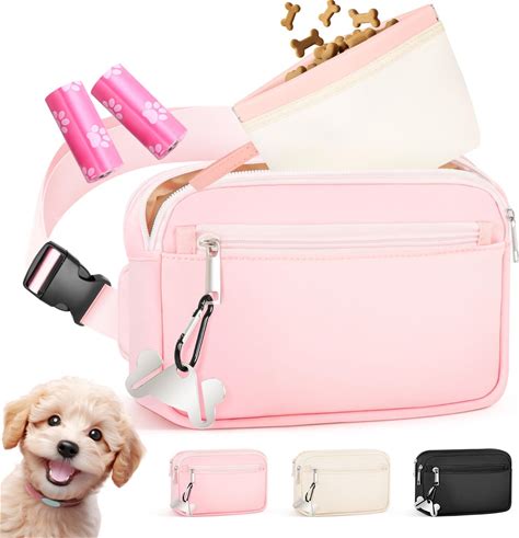 Focxoio Dog Treat Pouch & Dog Walking Bag,Removable Treat Pouches For Pet Training,Stylish Puppy Walking Fanny Pack With Used Waste Bag Holder,Pink