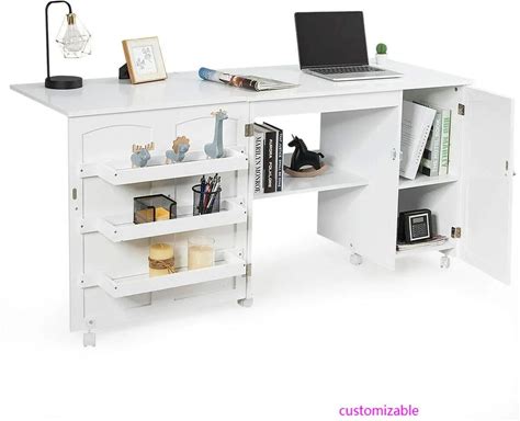 Folding Sewing Table, Versatile Sewing Craft Cart With Storage Cabinet Shelves And Lockable Casters,