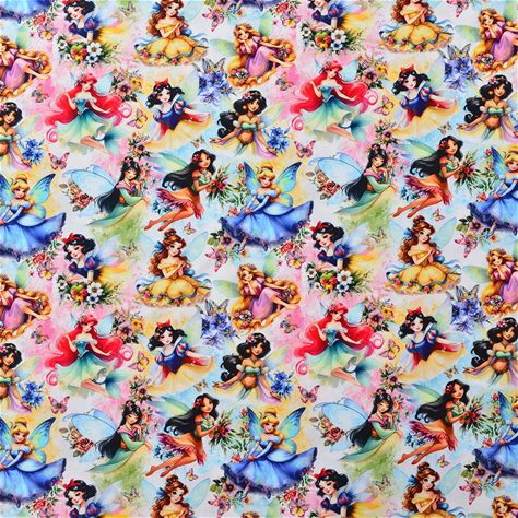 Disney Princesses Fabric Multi Princess Pattern Fabric Cartoon Cotton Fabric By The Half Yard