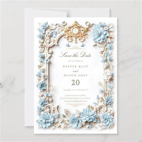 Faux Embossed Roses Blue Formal Parents Wedding Invitation