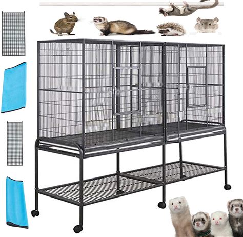 54" Large Double 3-Levels Small Animals Critters Wrought Iron Chew Proof Cage Center Slide Out Divider Tight 1/2-Inch Bar Spacing Removable Rolling