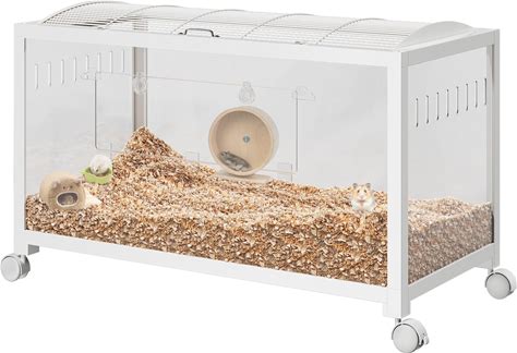 Garveehome Hamster Cage, Metal Mice And Rat Habitat With Acrylic Sides, Universal Wheels, Chew-Proof Dual Door Small Animal Habitat, Stackable Design