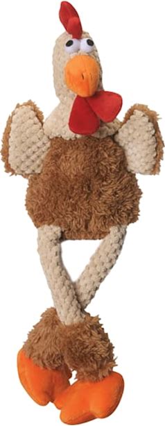 Godog Checkers Skinny Rooster Dog Toy, Brown, Small