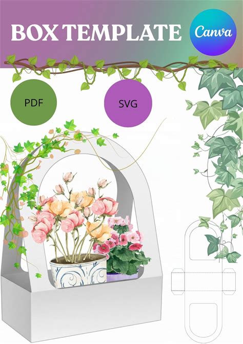 Gift Box Template With Handle | Printable Flower Basket Box | SVG + PDF Cricut Template | DIY Packaging Box Design