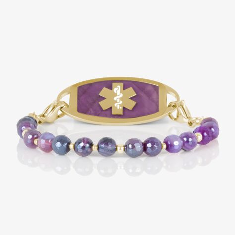 Lauren's Hope Women's Leah Beaded Stretch Medical ID Bracelet In Purple Agate With Gold Beads