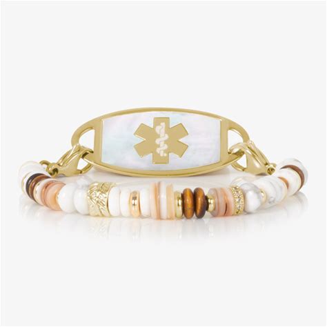 Lauren's Hope Women's Shelly Beaded Stretch Interchangeable Medical ID Bracelet In Gold Tone With Cream, And Earth Tone Beads