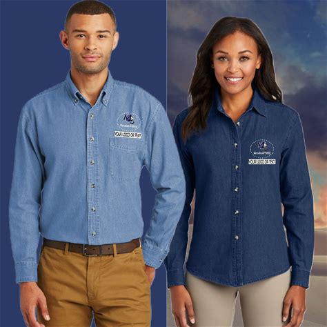 Embroidered Long Sleeve Denim Shirt For Men And Ladies - Add Name, Business Name Or On File Logo