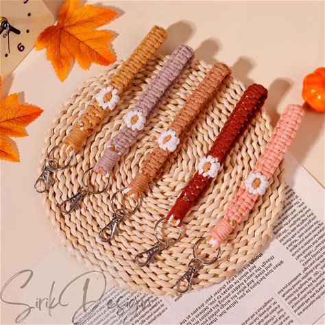 Personalized Keychain Custom Name Macrame Daisy Flower Boho Charms Accessories For Car Key Purse Backpack Gift