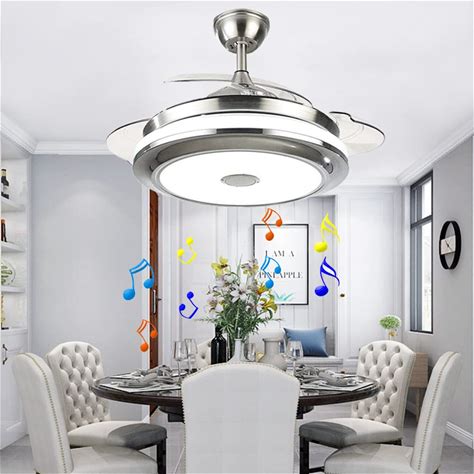 Morechange 42" Modern Smart Ceiling Fans Lights With Bluetooth Speaker, Remote Control 3 Color Changes Acrylic Retractable Chandelier Fans Lighting