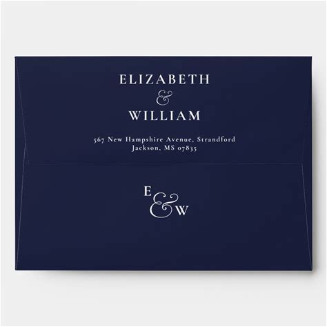 Navy Blue Modern Monogram Return Address Envelope
