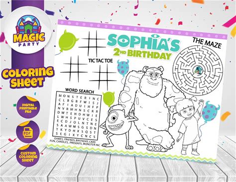 Monster Inc Coloring Sheet - Party Activity - Birthday - Printable Placemat - Personalized - Not Instant Download - DIGITAL FILE