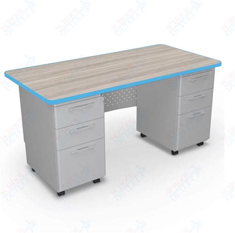 Hirsh Mobile Teacher Desk With Single Pedestal Storage - 48"W Classroom Desk With Wheels, Platinum / White