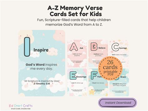 A-Z Memory Verse Cards For Christian Kids Bible Alphabet Scripture Cards Printable Kids Affirmation Cards Set For Homeschool & Sunday School