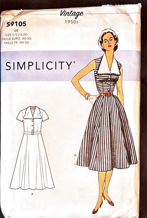 Simplicity 9105 Sewing Pattern: 1950S Vintage Dress, Detachable Collar, Sizes 16-24 Uncut