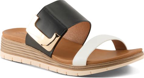 Spring Step Estella Women's Fashion Wedge Slide Sandals - Casual Leather Heel With Geometric Laser-Cut Detailing