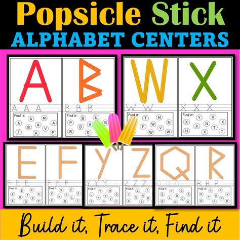 Popsicle Sticks Alphabets, Numbers, Shapes, Visual Discrimination, Letter Recognition, Activity Games, Pattern,