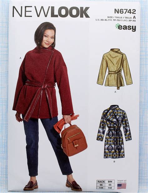 New Look Sewing Pattern 6742, Misses' Wrap Coat And Jacket, Uncut/FF, Misses' Size XS S M L XL, New Look N6742