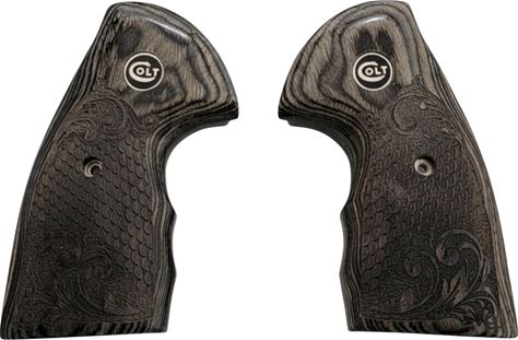 Colt Python Black Rosewood With Scrollwork And Scales Grips With Black Colt. Premium Gun Grips. Gray/Black. Pistol Parts.