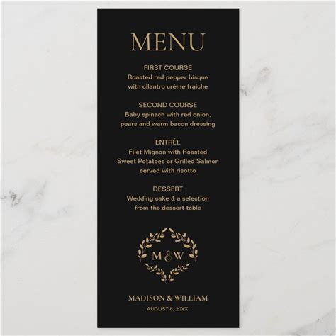 Formal Black Tie Wedding Crest Monogram Custom Menu