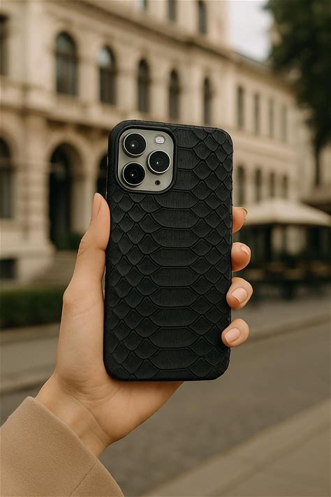 Handmade Black Python Leather Magsafe iPhone Case: Exotic Snakeskin Cover, Genuine Leather, Mag Safe