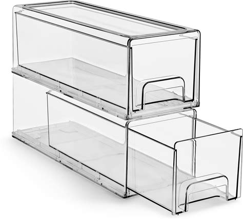 Sorbus Small Wide Clear Storage Drawers (2 Pack) - Stackable Storage Drawers For Pantry, Fridge, Or Cabinet - Slide Out Clear Bins With Handles For