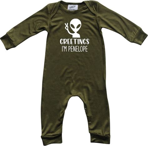 Greetings Alien Personalized Silky Long Sleeve Baby Romper - Gender Neutral-Baby Gift, Baby Shower, Fall Customized, Paranormal, Alien Shirt