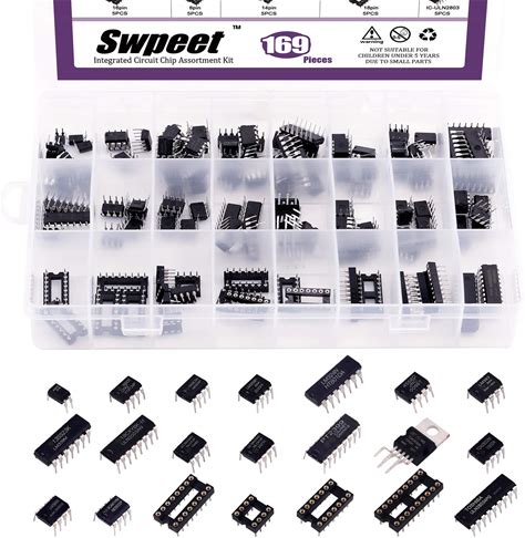 Swpeet 169Pcs 21 Types Integrated Circuit Chip Assortment Kit, Including Opamp, Oscillator, Pwm, LM324, LM358, LM386, LM393, NE5532, NE555, PC817,
