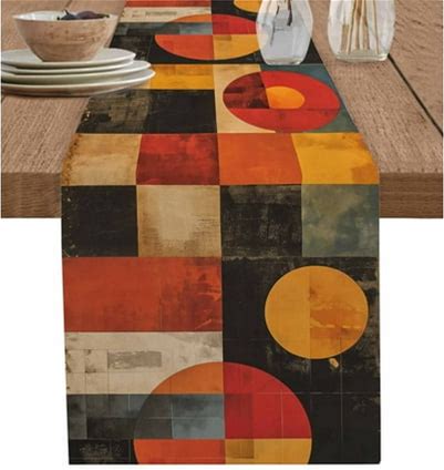 Table Runner Abstract Square Geometric Table Decoration For Kitchen Dinning Vintage Circle Texture Table Decoration For Indoor Outdoor Party Wedding D